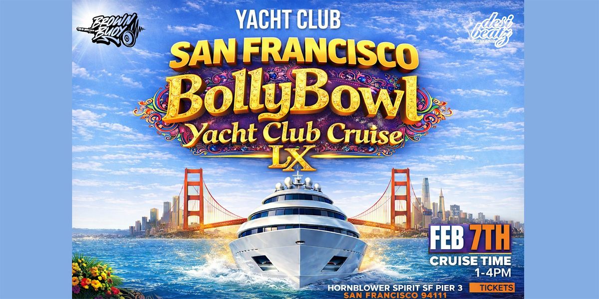 From 1:00–4:00 PM (boarding begins 12:00 PM sharp), we’re turning the Bay into the hottest floating BOLLYWOOD party of Super Bowl Weekend.
