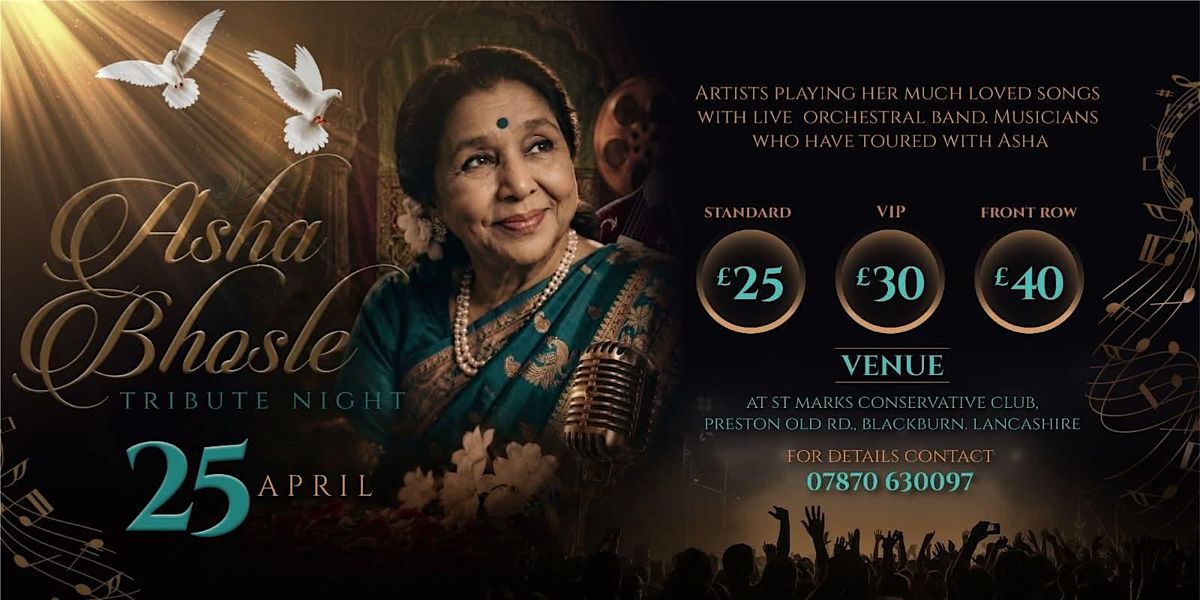 Asha Bhosle is the name who defines Bollywood. Her songs and music is the soundtrack to every south Asains life. Join us as we give thanks to the Legend with singers who will be playing her immortal tracks and a full live band to help re-create and re-live the golden memories by Madam Asha Bhosle Ji