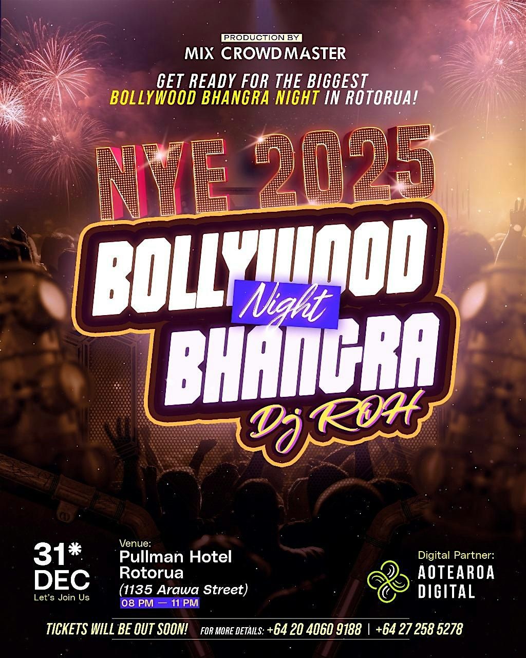 Put on your best attire and get ready to experience the magic of Bollywood right here in Rotorua. Whether you're a seasoned dancer or just looking to have a great time, this event is perfect for everyone!