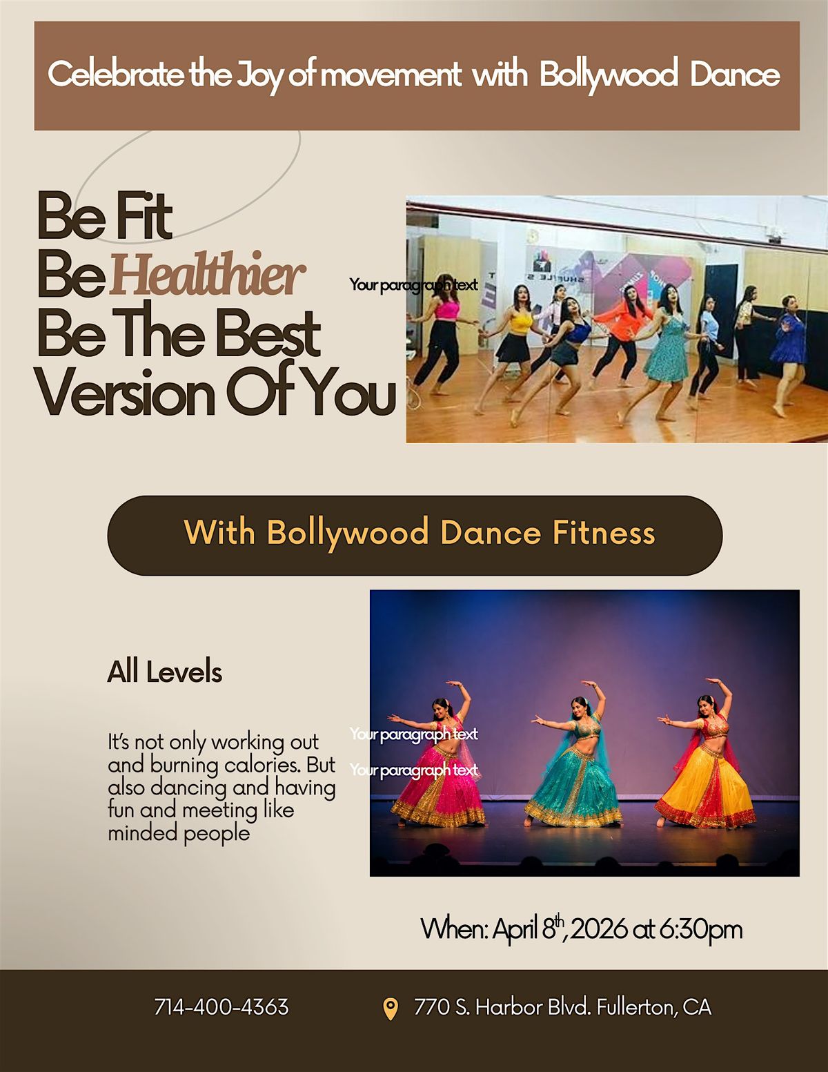 Join us for a fun, high energy Bollywood Dance workout-perfect for all levels