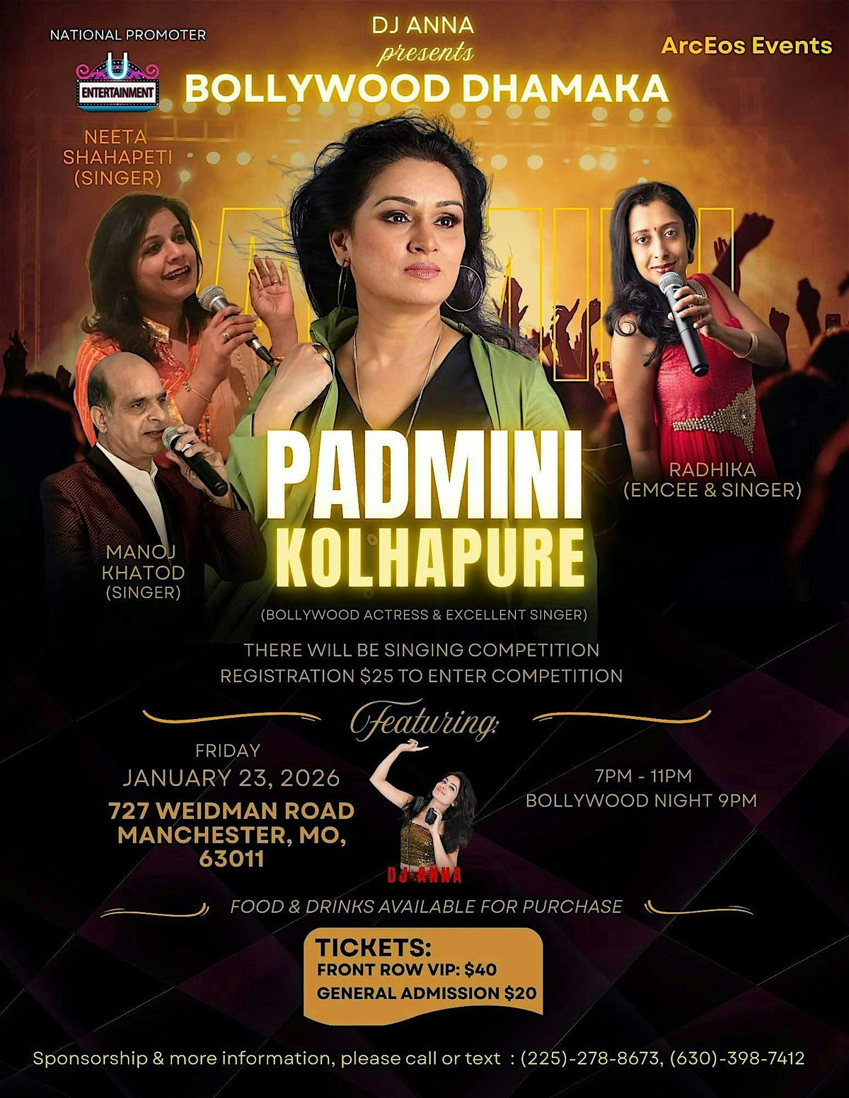 Singing Concert • Singing Competition • Glamorous Bollywood Vibe with Padmini Kolhapure • Dance Night with DJ ANNA