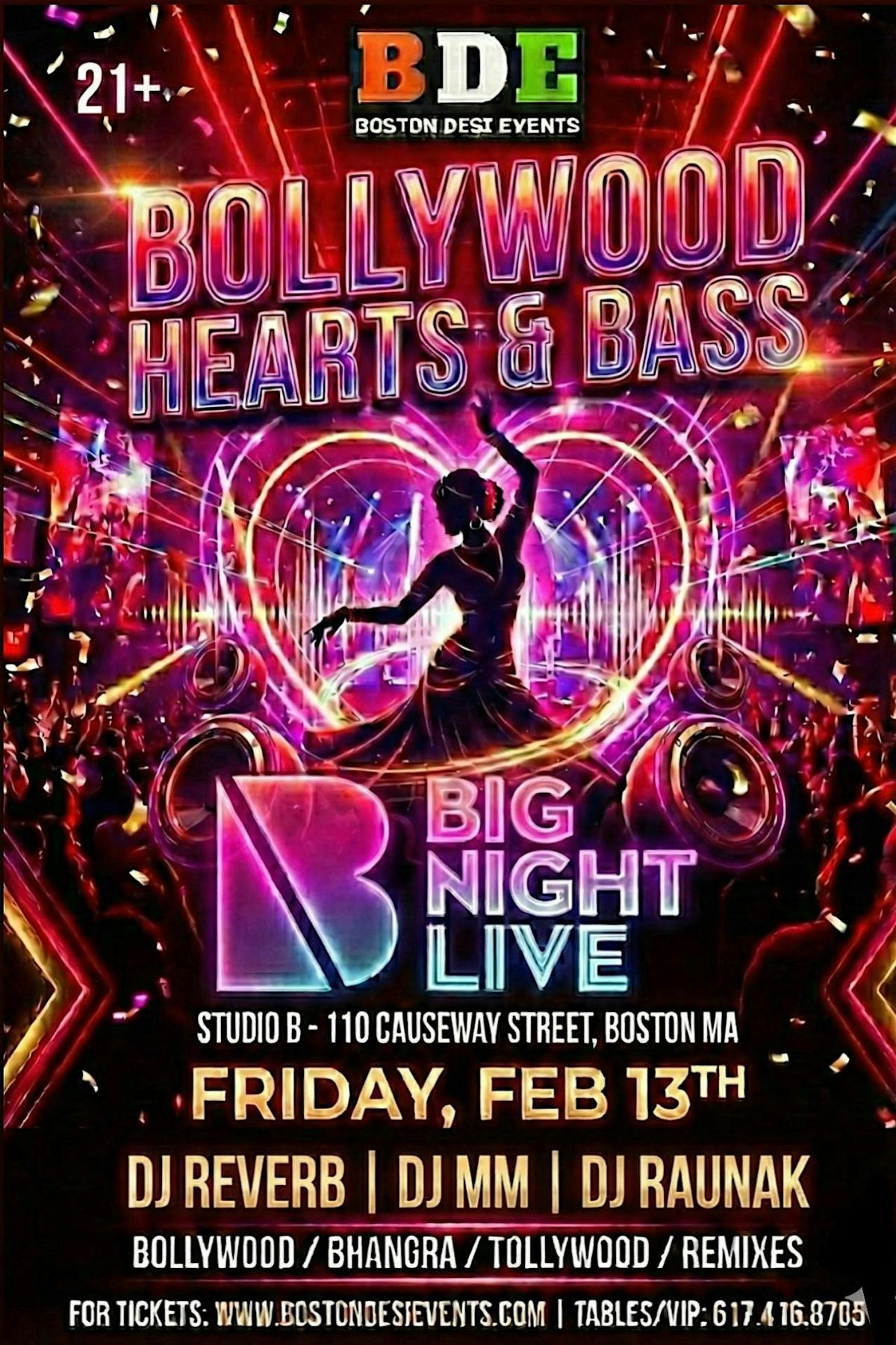Join Bostonโs hottest Bollywood crowd for a high-energy night of beats, bass, and Bollywood vibes at Big Night Live.