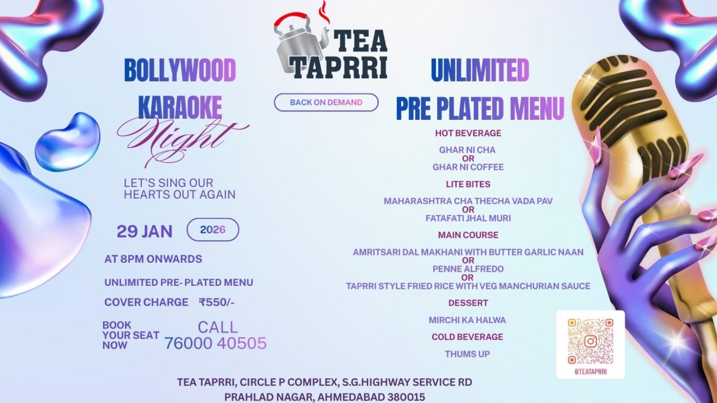 It’s back by popular demand! 😍🎤 Bollywood Karaoke Night @ Tea Taprri
