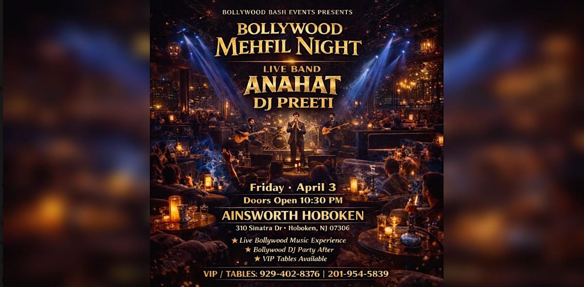 Bollywood Bash Events invites you to an unforgettable night of live Bollywood music, great vibes, and a high-energy dance floor at Ainsworth Hoboken.