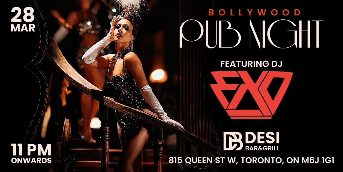 Join us on March 28th from 11 PM onwards for a high-energy Bollywood Pub Night featuring DJ EXO, bringing you the best of Bollywood, commercial hits & party anthems all night long.