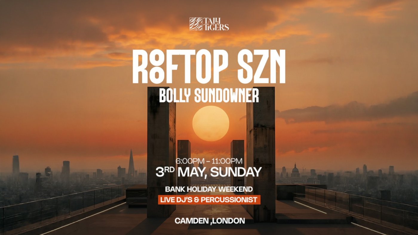 Bollywood, desi edits, vibes going from cute golden hour → full send after dark. 6–11PM @ Lock Inn Camden Rooftop Djkrishmusic on deck + live percussion.