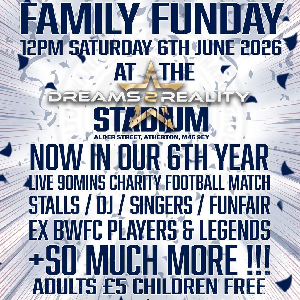 Our annual family event with an 11-a-side match featuring ex Bolton Wanderers players, funfair, stalls, activities, games, food & drink etc.