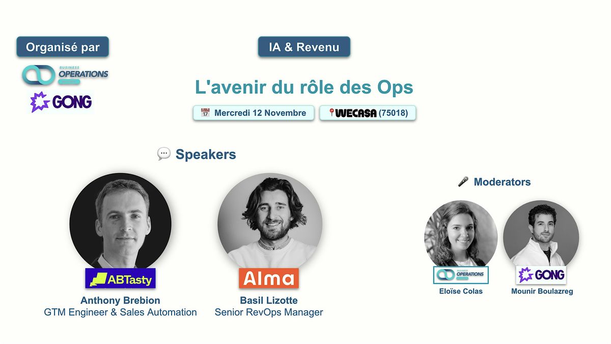Info: Les speakers vous présenteront chacun leur vision sur l'IA et répondront aux questions suivantes : Comment et à quel moment intégrer l'IA, Comment se transforme le rôle des RevOps ? Comment utiliser l'IA au quotidien ? Quels sont les meilleurs conseils à donner actuellement, et quel est votre retour d'expérience sur les process et outils mis en place ces dernières années ?