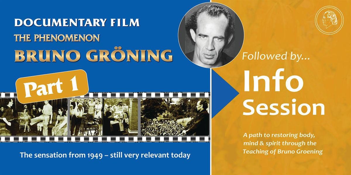 Following the film, an Information Session will be offered for those interested in learning more about Bruno Groening and the freely available transformative power he described—supported by medically documented success reports that continue to this day.