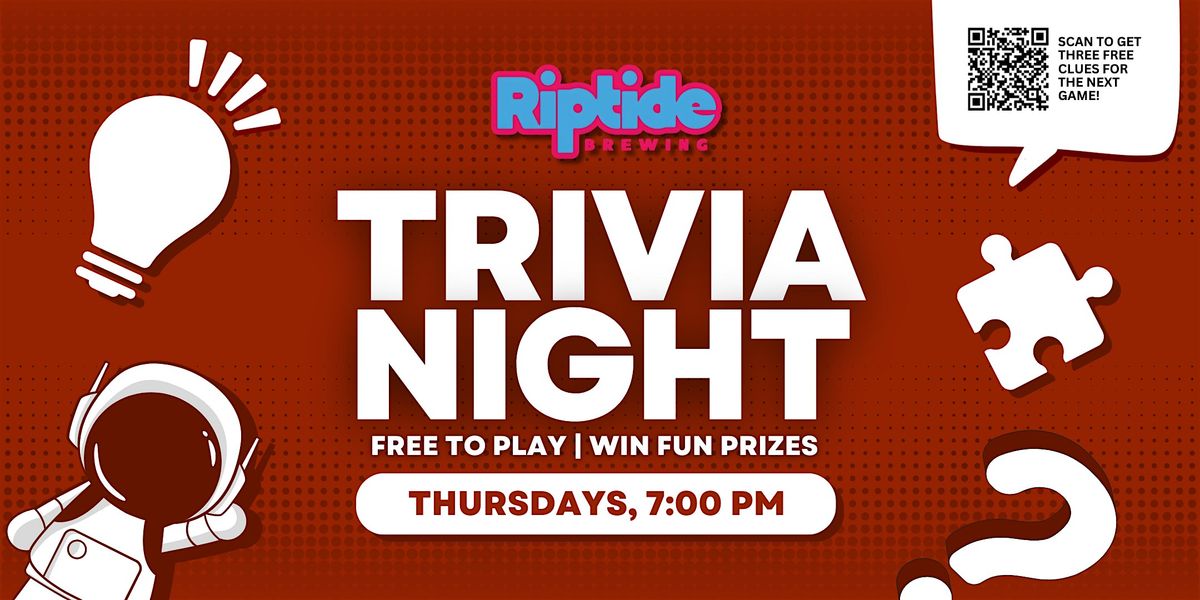 Join us for free live trivia every Thursday at 7pm at Riptide Brewing Company, located at 28120 Hunters Ridge Blvd, Bonita Springs, FL 34135! Free to play, and top teams win fun prizes!