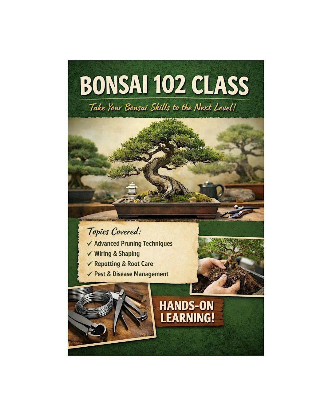 Ready to take your bonsai skills up a notch? Bonsai 102 is the perfect in-person event to dive deeper into the art of bonsai. Whether you’re curious about advanced shaping techniques or just want to connect with fellow bonsai lovers, this is the spot for you. Bring your enthusiasm and learn in a relaxed, hands-on setting. Don’t miss out on this awesome chance to grow your bonsai knowledge!