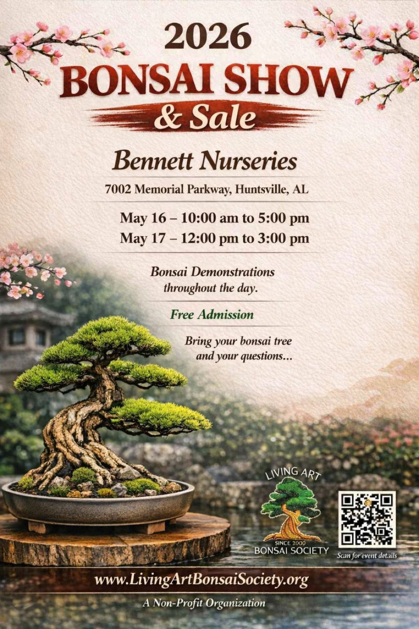 Living Art Bonsai Society present our annual show. Bonsai demonstrations throughout the day, free admission. Bring a bonsai tree with any questions. Come check out bonsai vendors.