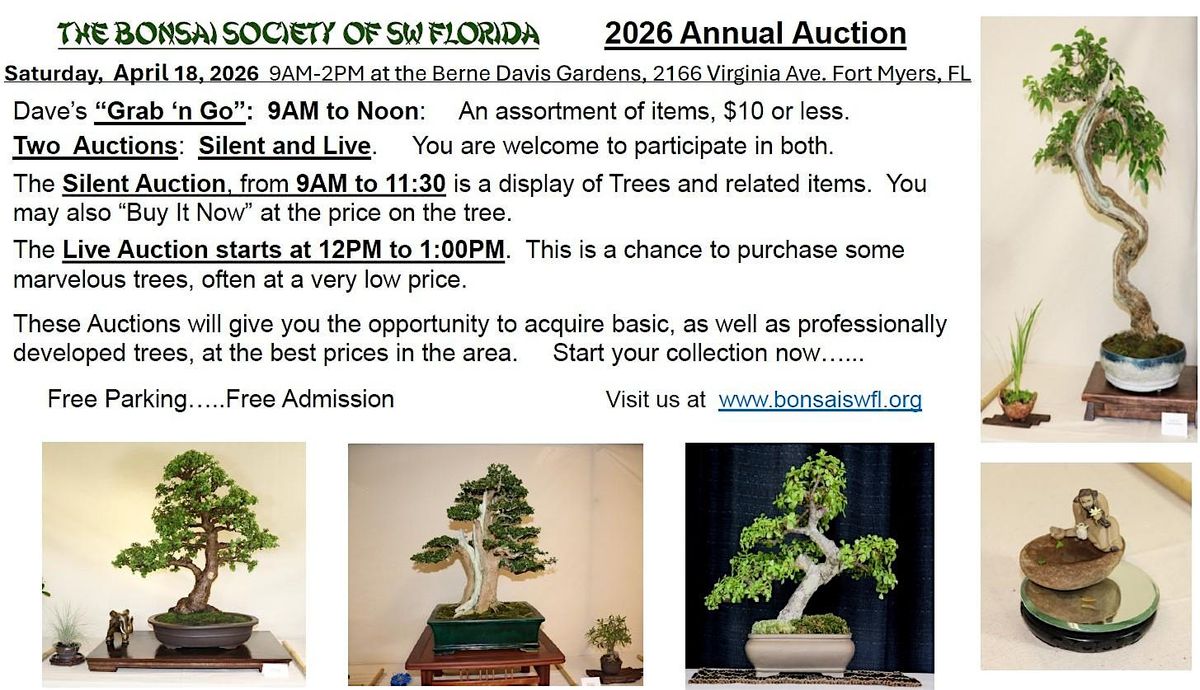 Don’t miss the Bonsai of Southwest Florida 2026 Annual Auction!