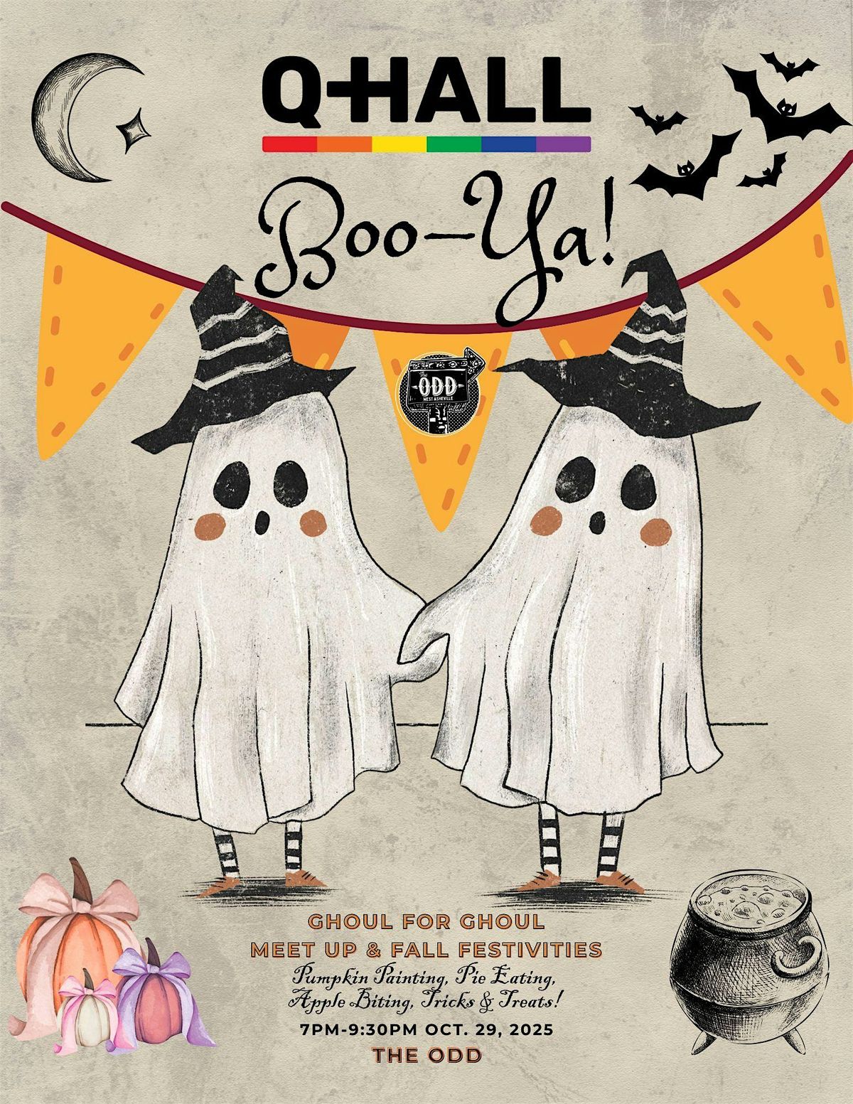Q-Hall x The Odd present Boo-Ya! Ghoul for Ghoul — a queer fall festival night made for sapphics, dykes, and all our adjacent mummies & zaddies. Think county fair meets campy Halloween, with a whole lot more flirting.