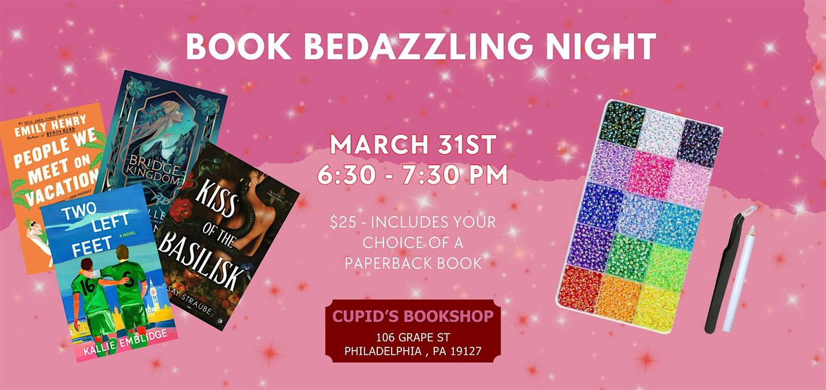 Bedazzle your next favorite read at Cupid's Bookshop! This is a fun, crafty event where you can decorate a paperback with rhinestones, gems, and other sparkly embellishments, transforming them into the prettiest edition to display on your shelf!