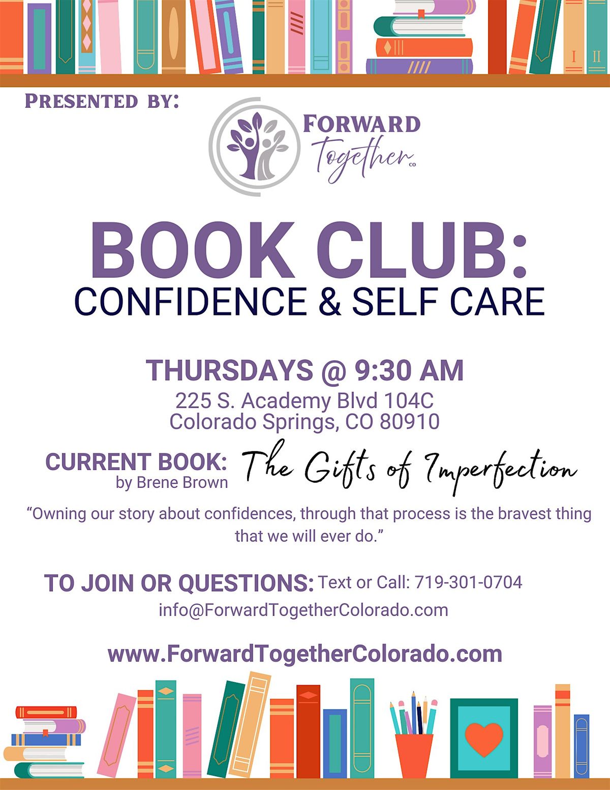 This peer-led book club creates space for meaningful conversation, reflection, and connection. Together, we explore themes of self-worth, confidence, and personal growth through reading, discussion, and journaling. Participants are encouraged to engage at their own comfort level in a supportive, judgment-free environment.