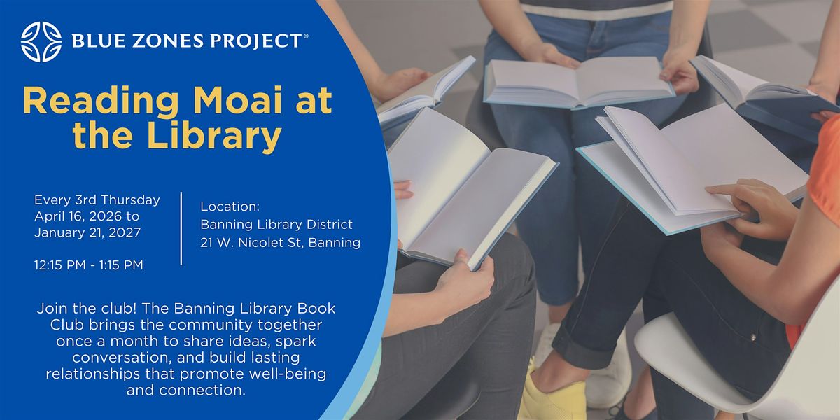 Join us for our Reading Moai at the Banning Library District, a monthly book club designed to bring people together through meaningful conversation, shared learning, and connection, in partnership with the Banning Library District.