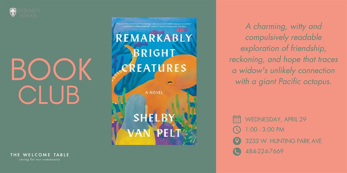 Join us for coffee, conversation, and community as we discuss Shelby Van Pelt's Remarkably Bright Creatures on Wednesday, April 29th at 1:00pm. An instant New York Times bestseller and name a "best book of summer" by The View and Southern Living, Remarkably Bright Creatures is "a heartwarming novel to suit any mood" (The New York Times) about a widow who befriends an octopus. Available wherever books are sold and from the Free Library of Philadelphia (but it's popular, so place a hold ASAP).