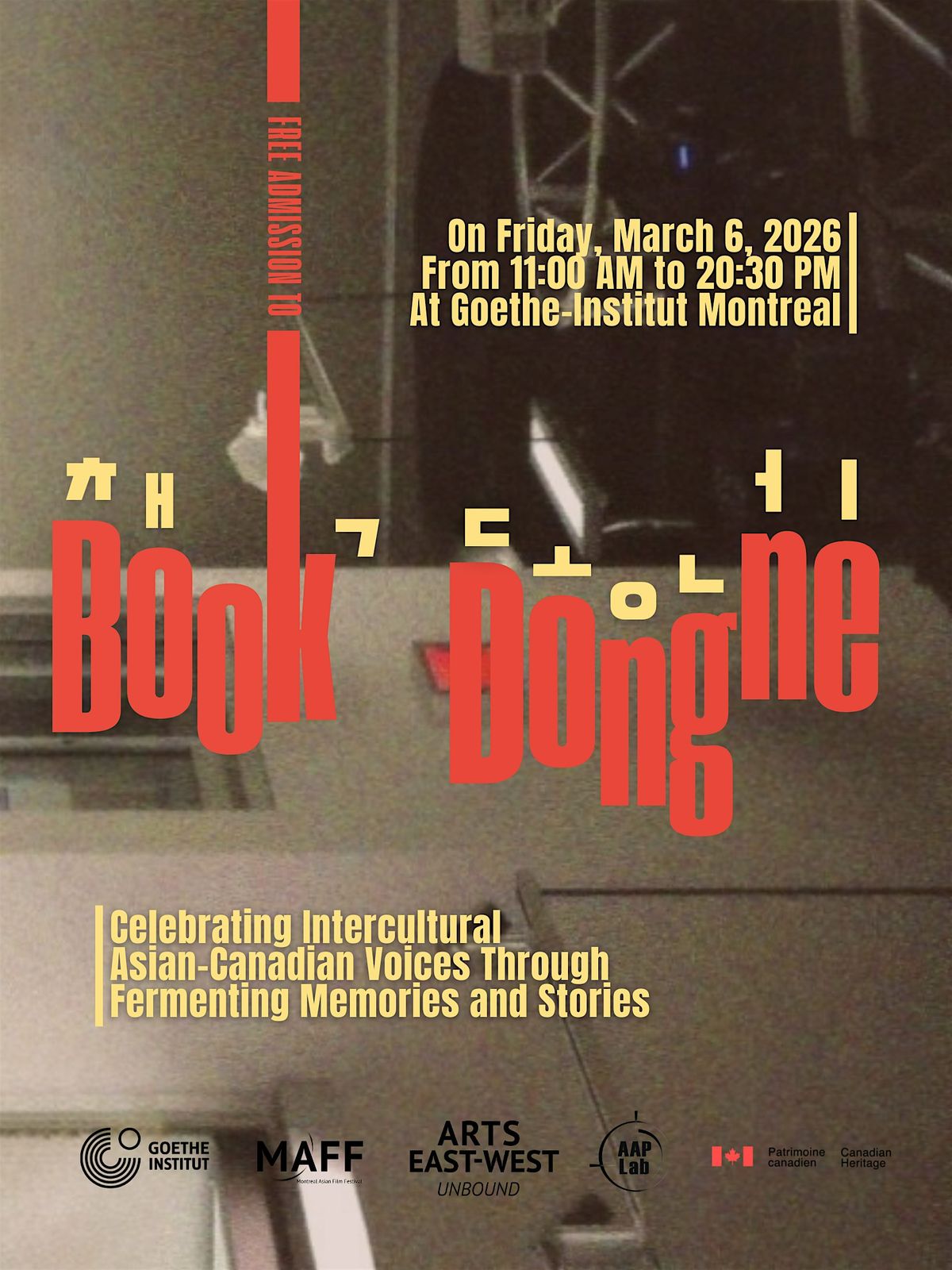 Our in-person BOOK DONGNE event is a gathering that celebrates Asian-Canadian voices and media arts. This event will be led by more than 25 Asian-Canadian professional artists and Asian community leaders. We will bring together more than 200 artists, writers, filmmakers, and creators from around Montreal to share their experiences as members of the Asian community.