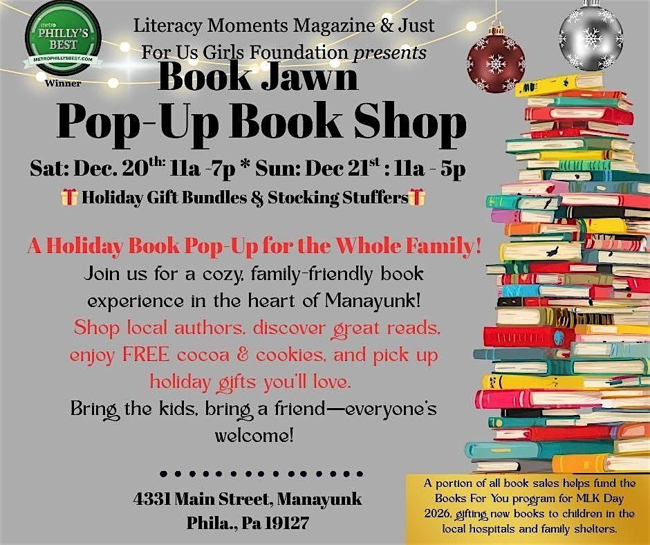 Step into Philly’s pop-up book shop experience—where stories, culture, and community meet. Shop books by local and independent authors, meet writers in person, and find your next great read for yourself or the kids. Whether you’re a reader, parent, or book lover, Book Jawn is a fun, feel-good way to support literacy and Black-owned businesses while enjoying the vibe. Come browse, connect, and leave with a book (or two!).