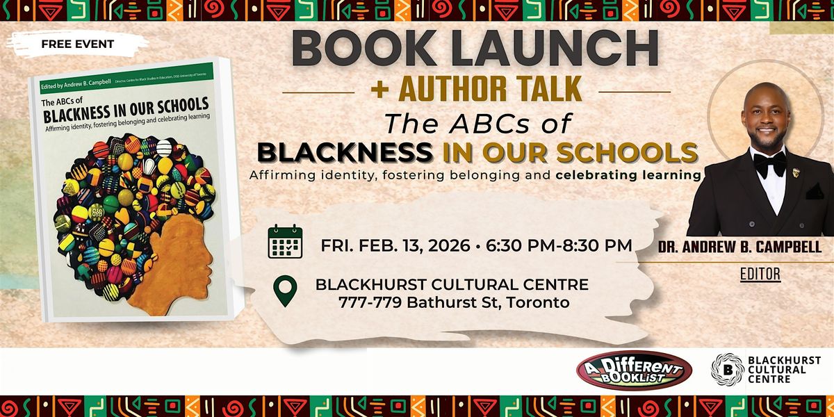 Join us for a free Book Launch and Author Talk celebrating The ABCs of Blackness in Our Schools: Affirming identity, fostering belonging and celebrating learning, edited by Dr. Andrew B. Campbell.