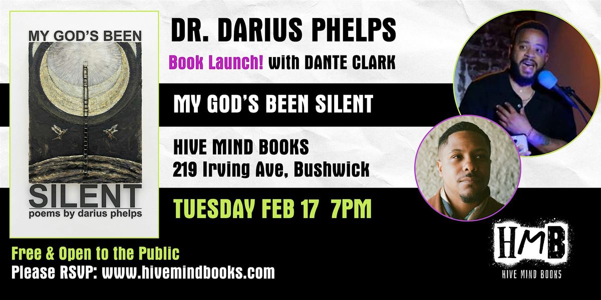 Join us at Hive Mind Books, Bushwick's Queer Bookstore & Coffee Shop, to celebrate the launch of My God's Been Silent, the brand new poetry collection by Dr. Darius Phelps.