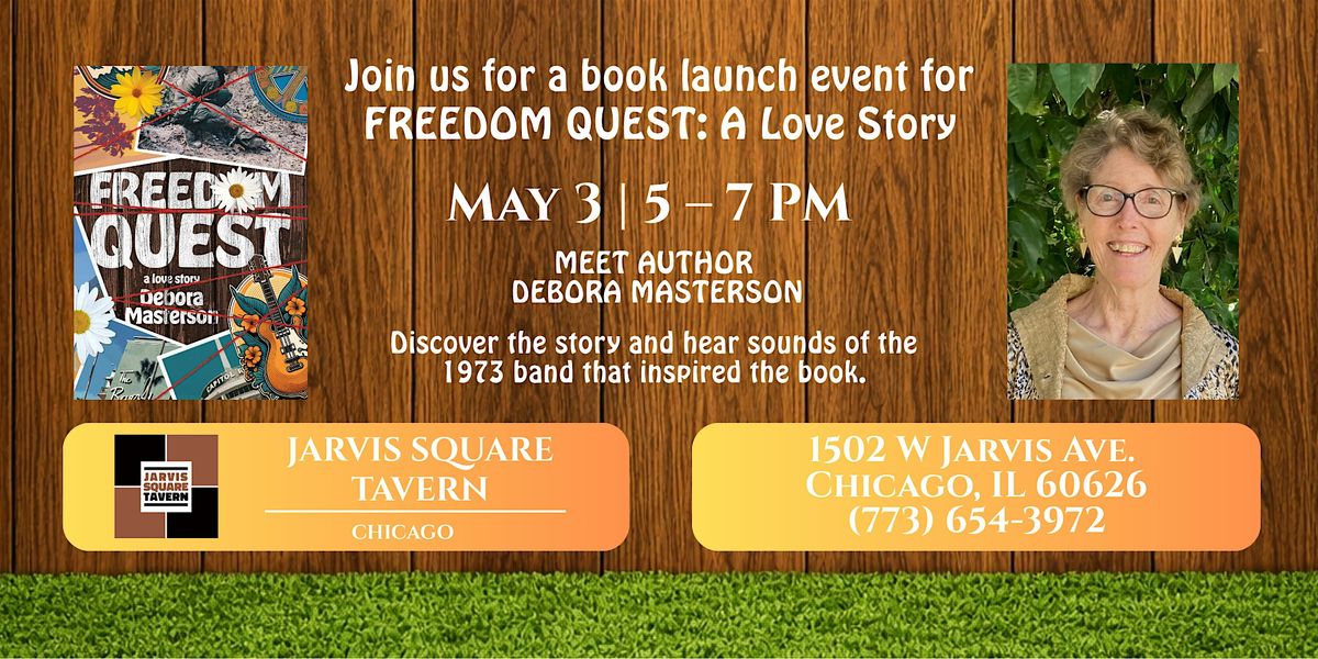 Join us at Jarvis Square Tavern for a special signing event with author Debora Masterson celebrating the release of her debut novel Freedom Quest: A Love Story. We can't wait for you to discover the story and sounds of Freedom Quest, a band that got its launch in San Diego in the early 1970s.