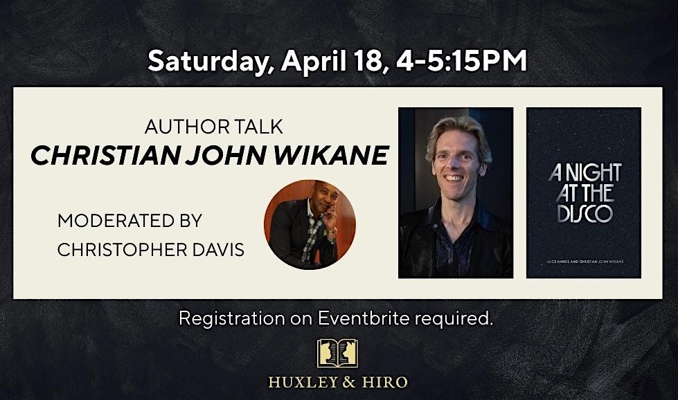 Huxley and Hiro is thrilled to host author and noted music journalist Christian John Wikane for a Q&A about his book A Night at the Disco, which celebrates more than 100 artists who shaped dance music from 1970-1979. Wilmington-based art and culture curator Christopher Davis will interview Christian about the legendary artists and music that fueled a phenomenon during the 1970s. Book signing will follow Q&A.