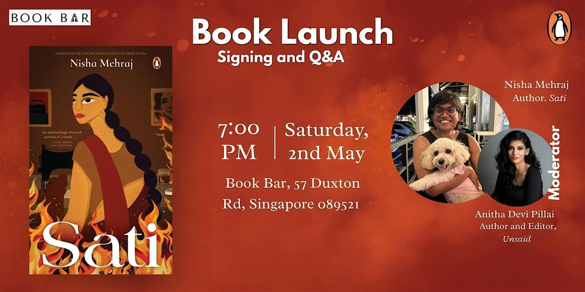 Join us at Book Bar, Singapore, for the launch of Sati by Singapore Literature Prize nominee Nisha Mehraj.