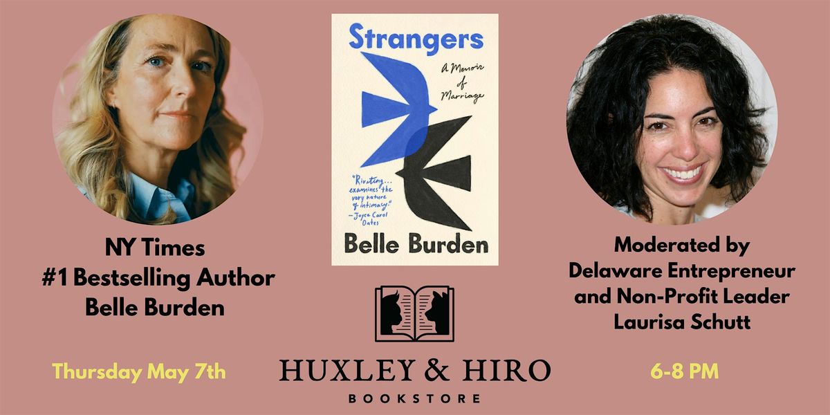 Huxley and Hiro thrilled to host new literary talent, Belle Burden for an evening discussion of her debut memoir Strangers: A Memoir of Marriage! Moderated by Burden's lifelong friend and Greenville resident Laurisa Schutt, it promises to be an evening of insight and inspiration!