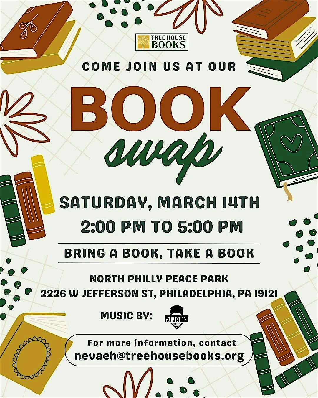 Bring a book and take a book! Join Tree House Books in our first Book Swap event of the year. Music by DJ JAMZ!