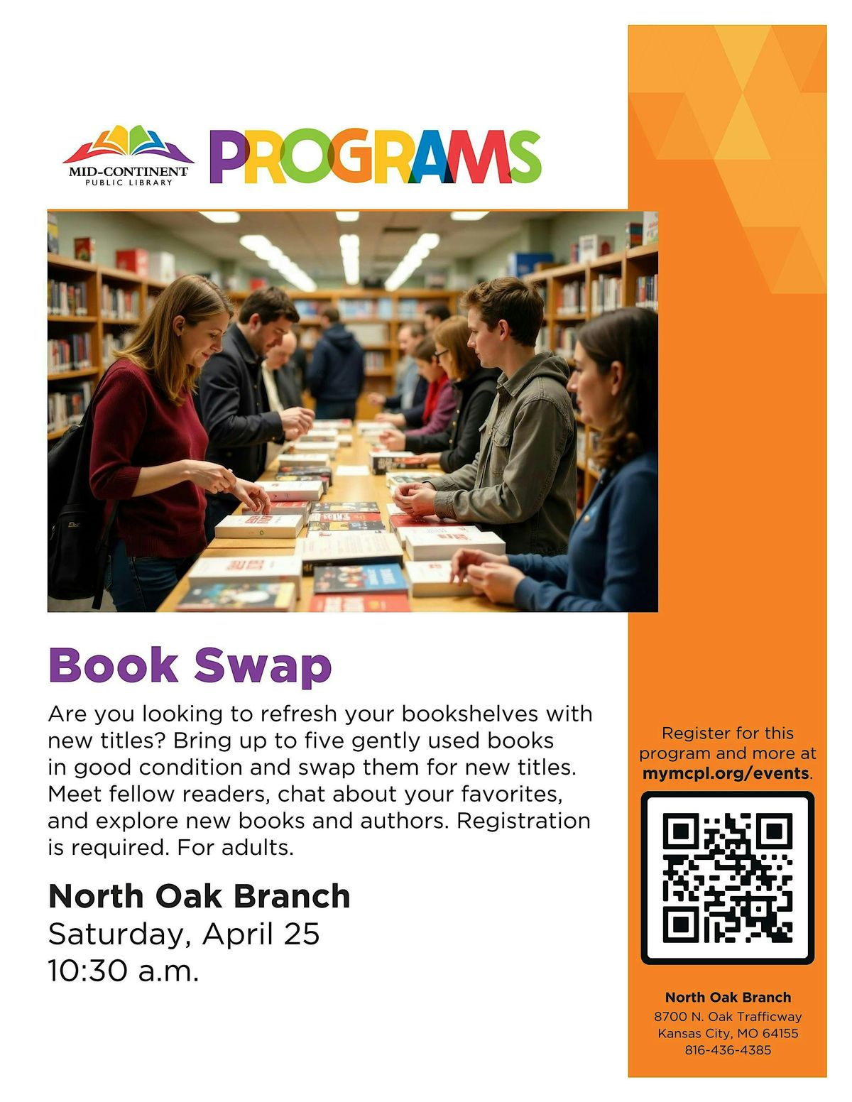 Are you looking to refresh your bookshelves with new titles? Bring up to five gently used books in good condition and swap them for new titles. Meet fellow readers, chat about your favorites, and explore new books and authors.