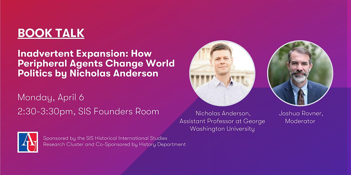 The SIS Historical International Studies cluster and the Korea in Global Affairs Initative invite you to a book talk on Nicholas Anderson's new book "Inadvertent Expansion: How Peripheral Agents Change World Politics."