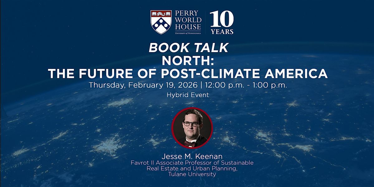 Climate change is already fundamentally reshaping where and how we live. Join Perry World House for a conversation with Jesse M. Keenan on his new book, North: The Future of Post-Climate America (Oxford University Press).