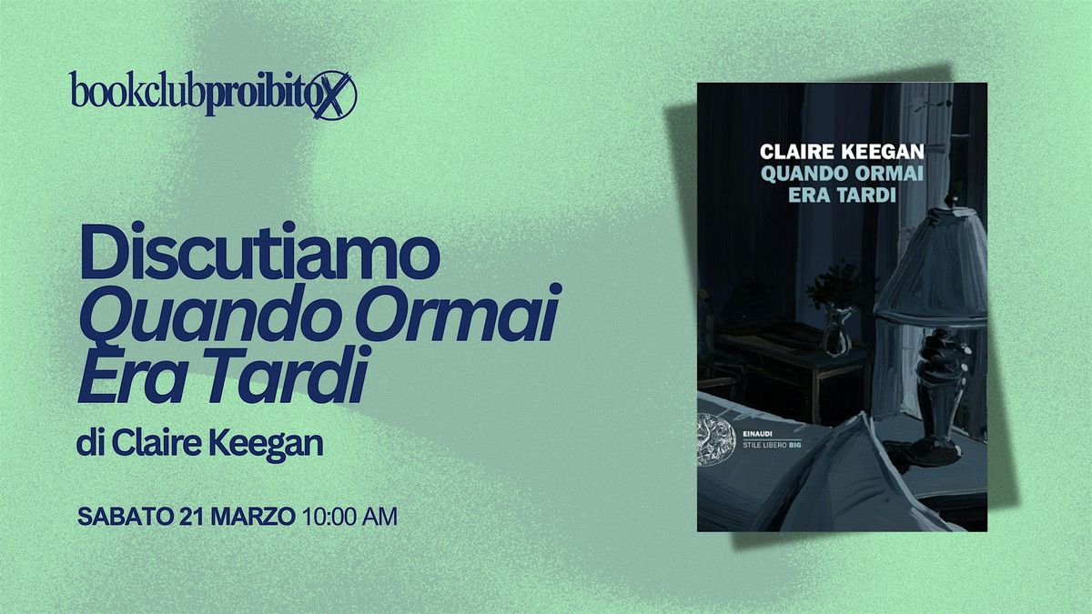La community di @bookclubproibito si incontra il 21 Marzo per discutere il libro del mese, Quando Ormai Era Tardi di Claire Keegan.