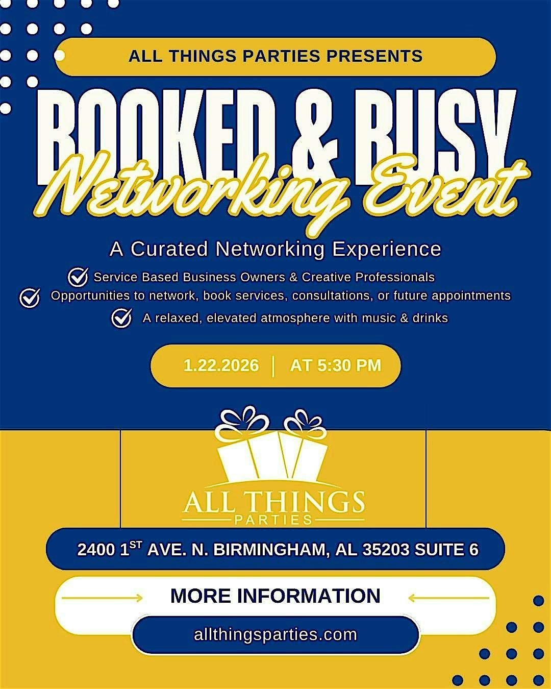 Don’t miss out on the chance to be booked & busy—see you there!