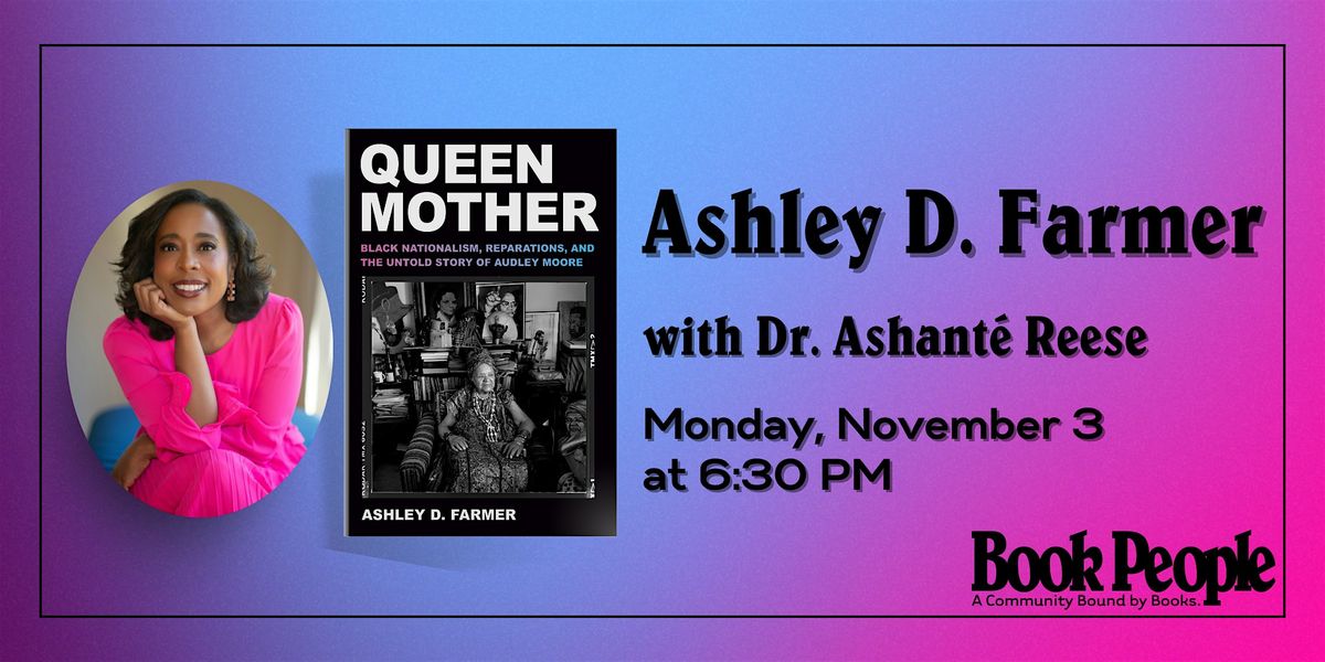 Please welcome Ashley D. Farmer and Dr. Ashanté Reese to celebrate Queen Mother: Black Nationalism, Reparations, and the Untold Story of Audley Moore, presented by !