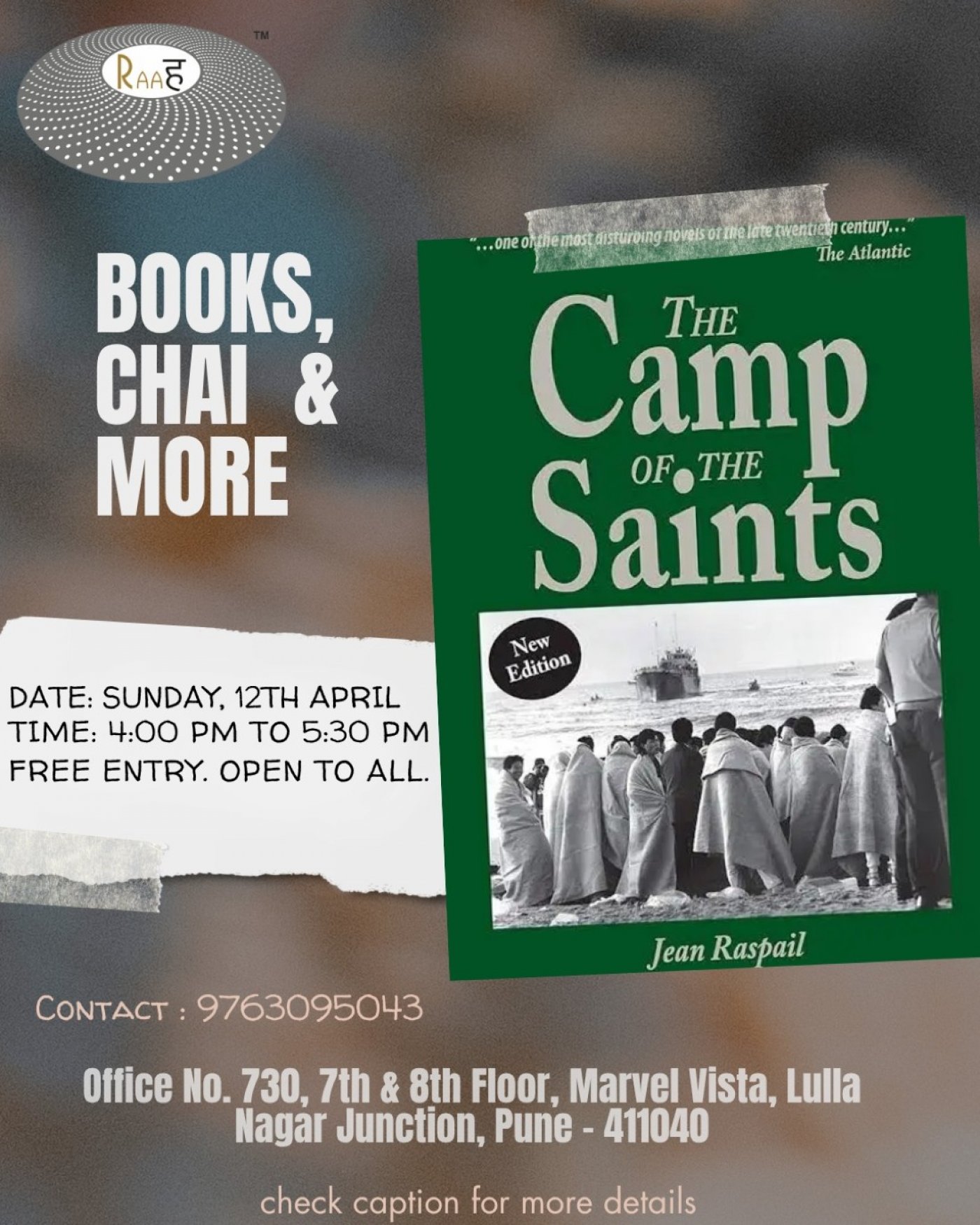This month, Books, Chai & More, the Raah Book Club, will be discussing the book The Camp of the Saints by Jean Raspail.