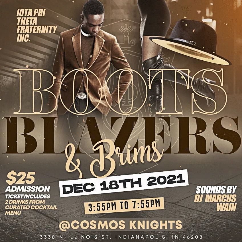 Wind down from the holiday stress with the brothers of IOTA PHI THETA at Cosmos Knight Cigar Bar and Lounge for Boots, Blazers and Brims.About this Event