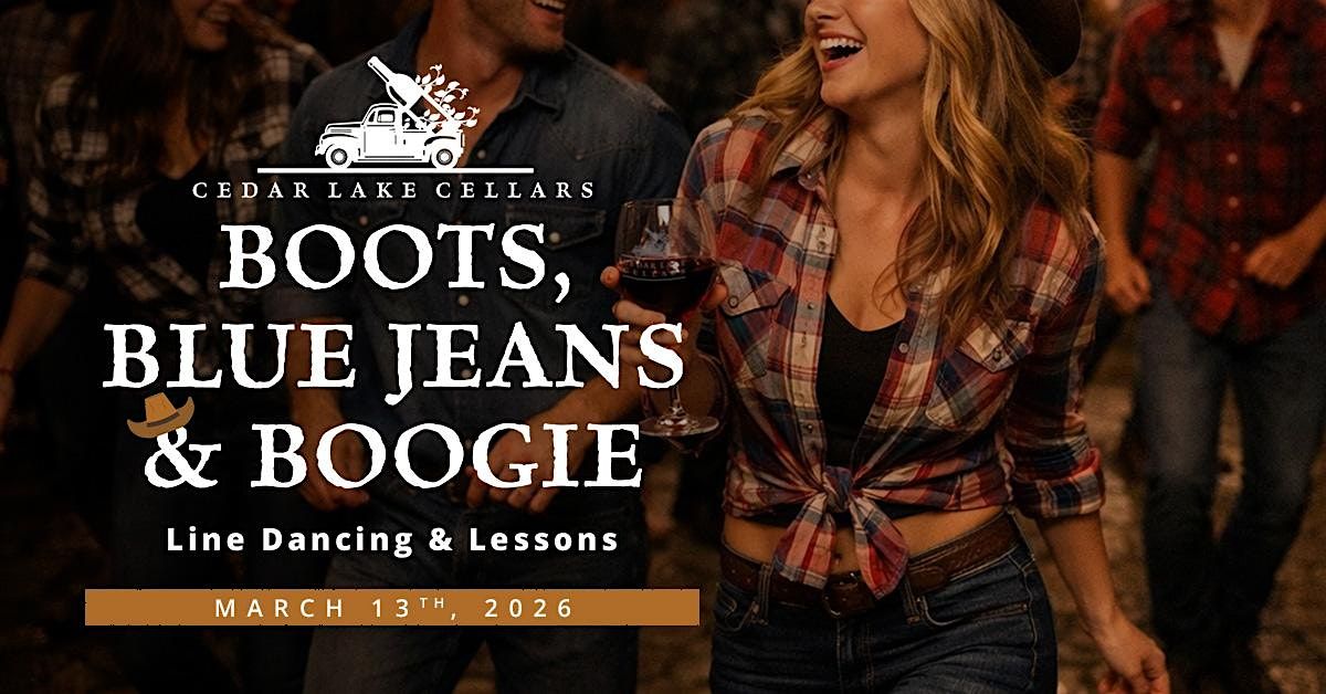 Join us in the Barrel Room on Friday, March 13th for Boots, Blue Jeans & Boogie—a high-energy night of country music and dancing. Start with line dancing lessons at 6:30pm, then hit the floor for open dance at 7:30pm on one of the area’s largest dance floors. Grab your friends and kick off the weekend Cedar Lake Cellars style.