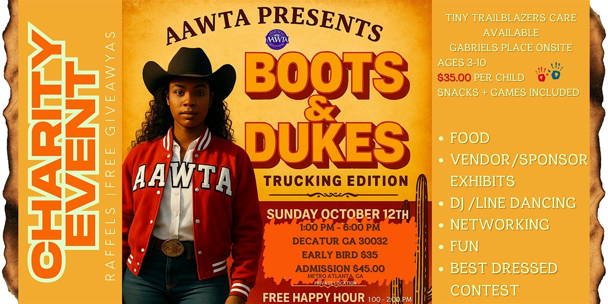 π₯ΎπΆ AAWTA Presents: Boots & Dukes | Trucking Edition πβ¨Get ready for a fun-filled evening in Metro Atlanta where trucking, line dancing, and community collide!