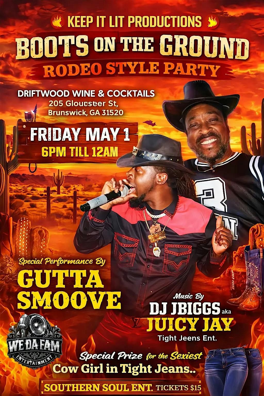 Get ready to kick up some dust at the Boots On the Ground Rodeo Style Party! Join us on April 26, 2026 at 6pm till midnight (Eastern Time) for a fun-filled evening of rodeo vibes, great music, and good company. Whether you’re a cowboy, cowgirl, or just love a good party, this is the place to be. Don your boots and hat, and let’s make some memories together! Prize to the sexiest cowgirl to show up in jeans! DJ JBiggs throws the tunes and Gutta Smoove as special entertainer of the night!
