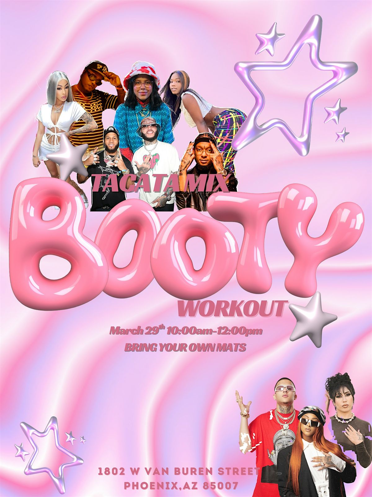 Expect a 1 hour workout, make sure to bring your own mats, shop local vendors and take pictures at the Photo Booth! 🎀