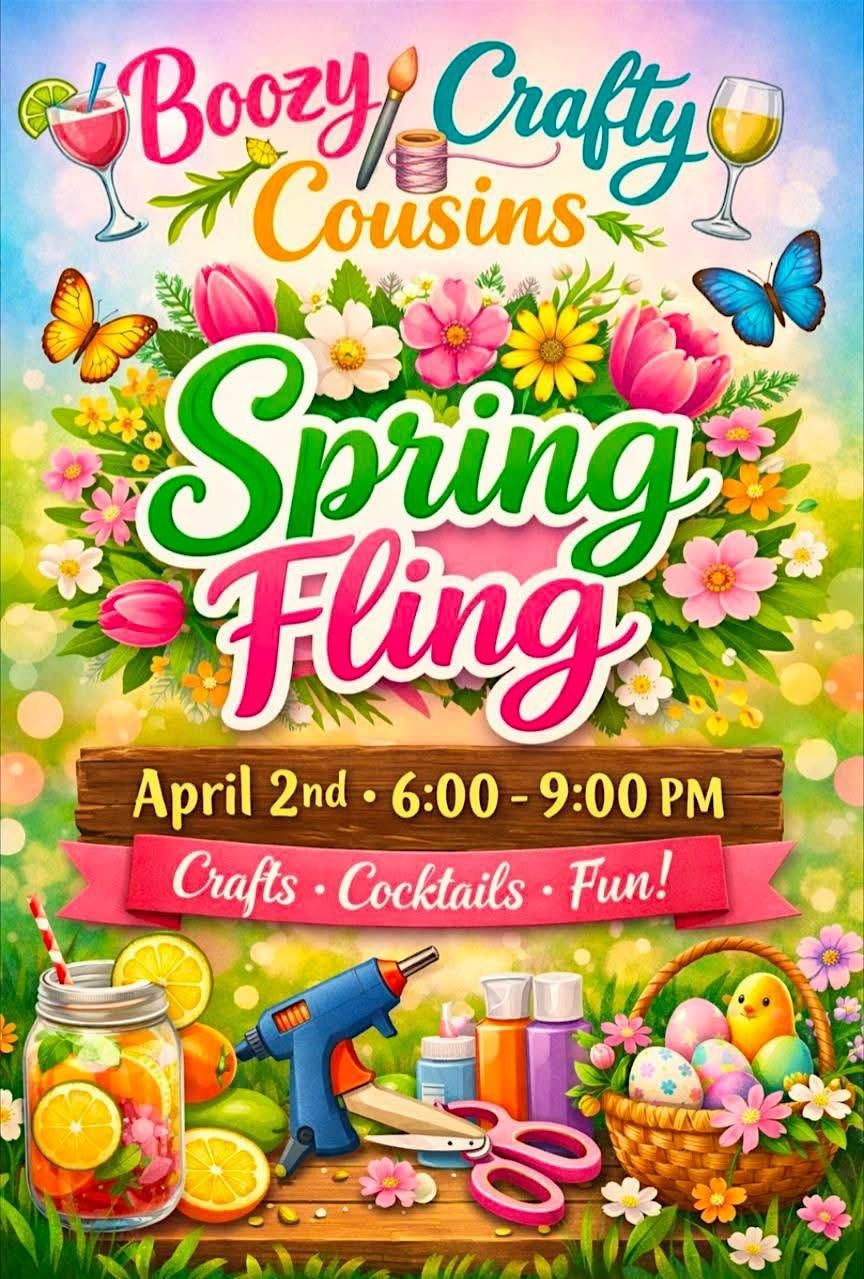 Join the Boozy Crafty Cousins for a Spring Fling Craft Night β the perfect night out to relax, get creative, and enjoy good drinks with great company.