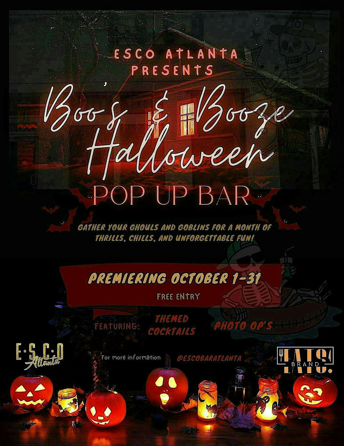 ESCO Atlanta presents Boo’s & Booze, an all-October Halloween pop-up bar filled with spooky décor, glowing photo ops, and themed cocktails crafted for the season.
