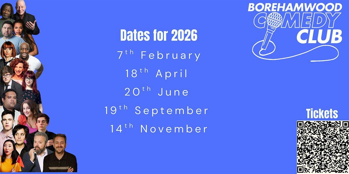 Big laughs are back! Borehamwood Comedy Club returns in 2026 with 5 huge nights. Scan for tickets & don’t miss out!About this Event
