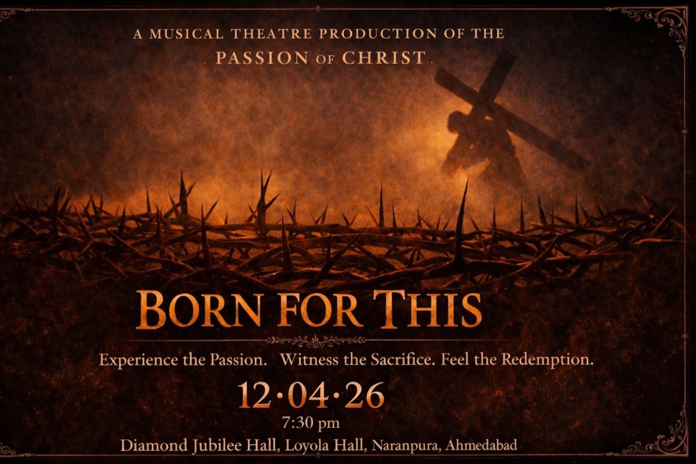 A powerful live dramatization of the Stations of the Cross, “Born For This” brings together young and elderly performers from across Ahmedabad. Through narration, music, and tableaux, it reflects the suffering, love, and hope at the heart of Christ’s journey.