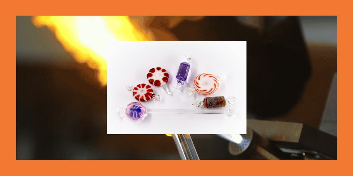 This 4-week (12-hour) class will teach you the fundamentals of working in our flame working studio. We will learn about safety, equipment, and beginning techniques such as making seals, flame cutting, combining rods and making punties. Student projects for this course will focus on the basic techniques used to design and create candies out of glass. Tools and basic supplies are included in this course.