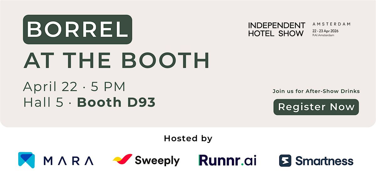 Join us at the booth for a relaxed borrel. A chance to grab a drink, meet other hoteliers and tech partners, and continue a few conversations from earlier in the day.