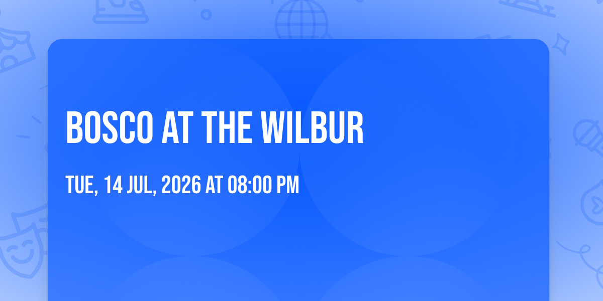 ✨ Discover the extraordinary at Bosco at The Wilbur, where magic meets reality in ways you've never imagined! 🏛️ Set in The Wilbur nestled in bustling Boston, MA, this event promises to be a landmark occasion. 📅 Taking place on July 14th, 2026 at 08:00 PM, it's going to create an atmosphere where every moment becomes a cherished memory. 🌟 Immerse yourself in an experience crafted with attention to every detail, designed to surprise and delight at every turn. They have worked tirelessly to ensure this event exceeds all expectations, bringing together elements of entertainment, innovation, and pure joy. 🎊 Don't miss your chance to be part of this remarkable journey!
